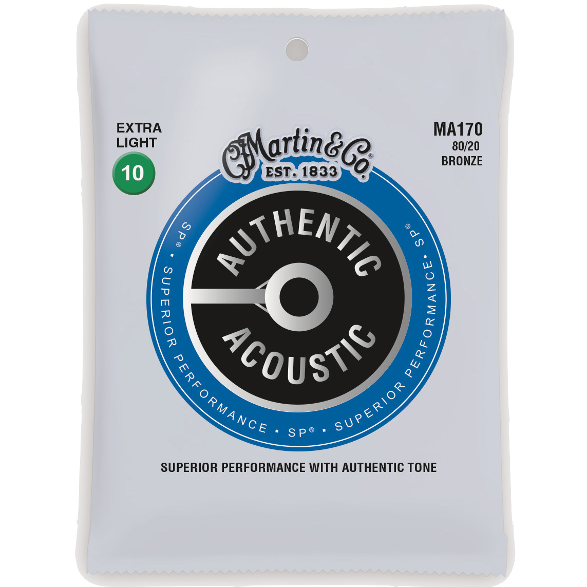 Den legendariske SP-serie fra C.F. Martin har fået et kvalitetsmæssigt løft og er omdøbt til Authentic Acoustic SP®. Kernematerialet er opgraderet til et endnu mere stabilt materiale der både øger stemmestabiliten og forbedrer tonen betragteligt. Derudover at kernestrengen nu tin-plated; hvilket forbedrer resistancen overfor korrosion og får strengen til at holde endnu længere – uden at være behandlet.