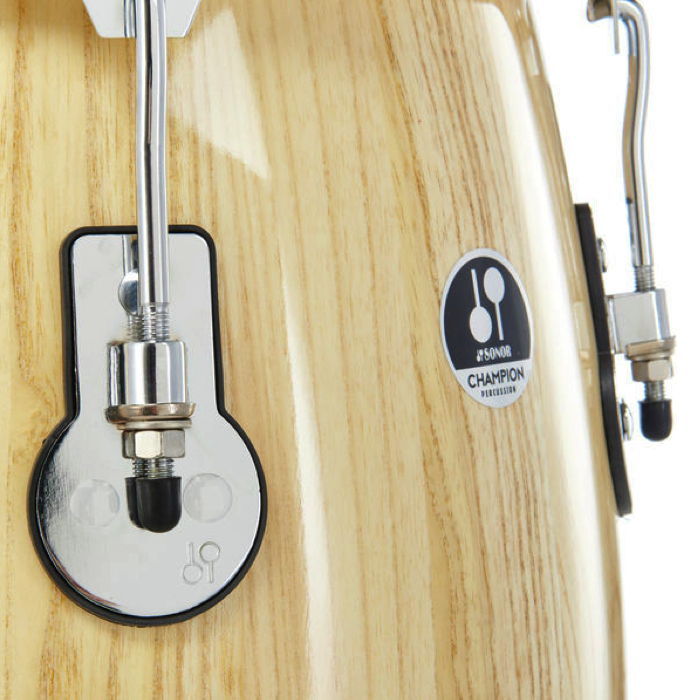 Conga-tromme i træ og ægte bøffelskind – måler 35 cm i diameteren.   Congaen kan bruges som enkeltstående tromme, eller som del af et par, sammen med en større, eller mindre conga – f.eks. quintoen. Rigtig god tromme til større børn og voksne.