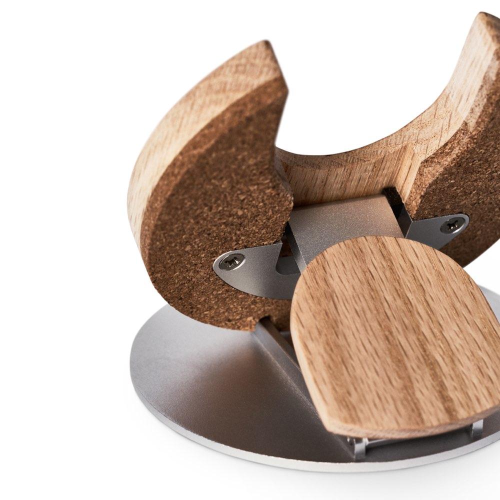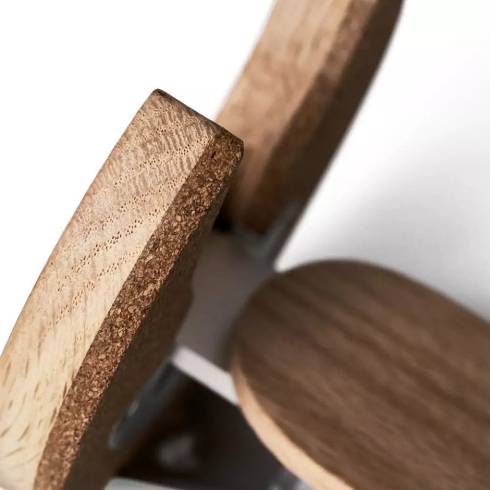 Holderen er produceret i massivt træ med bagside af olieret kork og mekanik af aluminium.