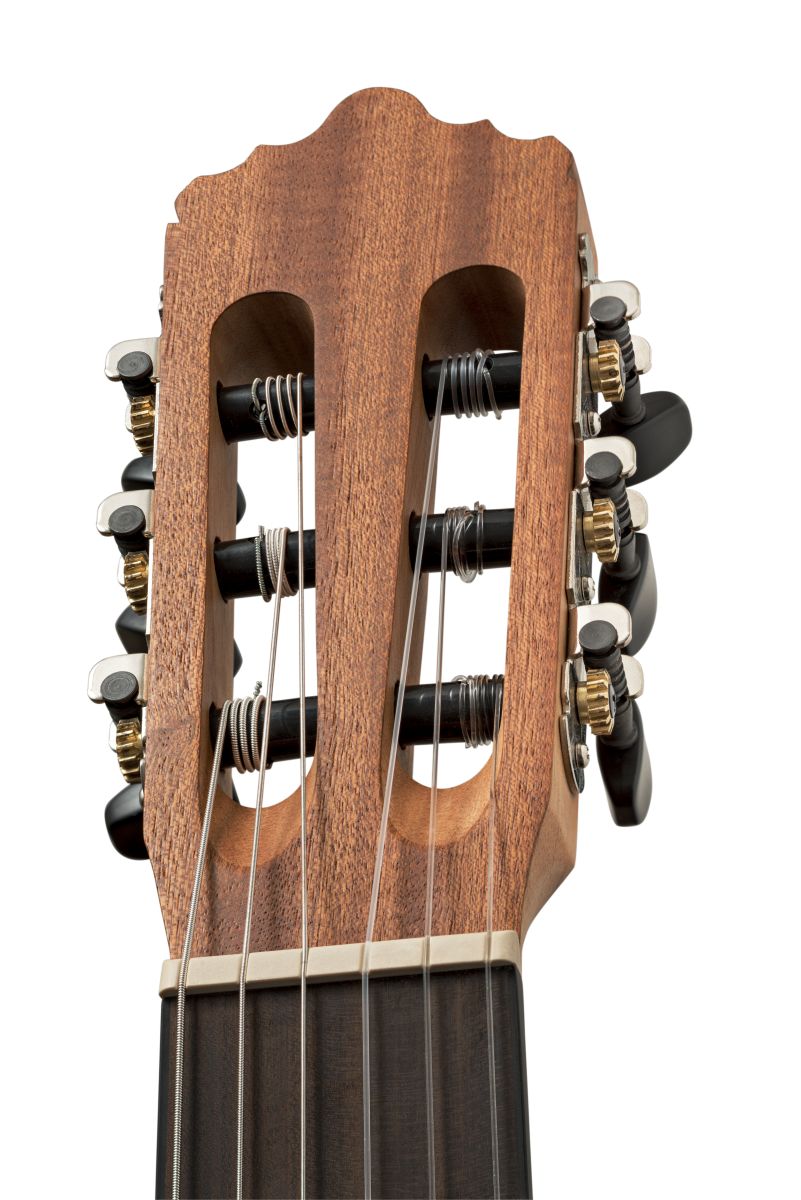 Klassisk/spansk guitar i 3/4, top af gran, ryg og sider af mahogni, hals af nato, gribebræt af ovangkol hårdtræ, bro af ovangkol hårdtræ doubble hole, saddel og bro af nubone, Saravez-strenge Cantiga High Tension 510AJ, bindinger af sort ABS plast, finish naturlig satin åben pore, stemmeskruer forniklet med sorte knapper, mensur længde 590mm, hals bredde ved saddel 49mm, EGTAs anbefalede model 2019/2020