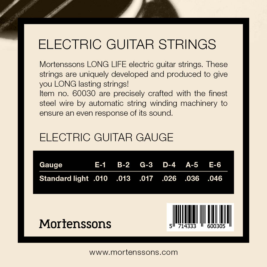 Mortenssons el-guitar strenge .010 med i alt 6 strenge