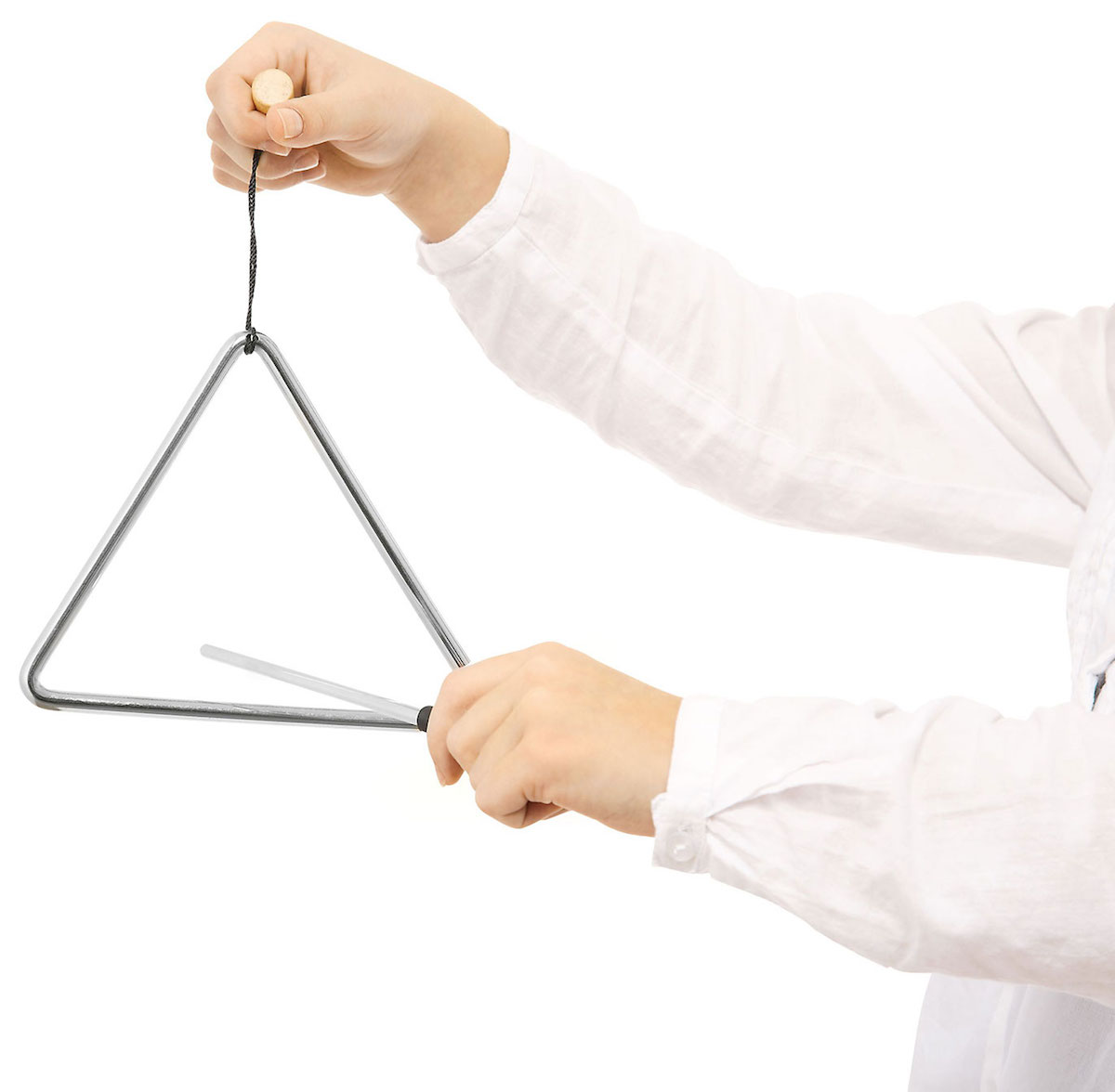 Triangel i børnestørrelse, af stål. 10 cm.
