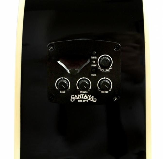 Halvakustisk western fra Santana. Med indbygget pickup og tuner.