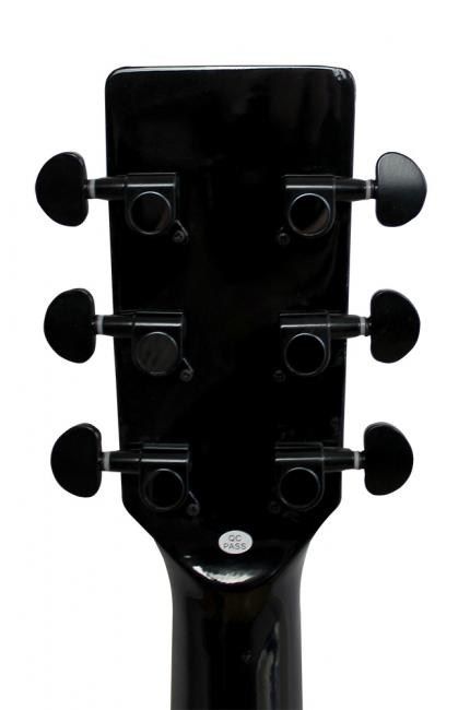 Her får du en velspillende westernguitar med massivt grandæk, mahognibund og -sider og palisander (rosewood) gribebræt. Guitaren er lakeret i et flot high gloss og har cutaway.  Det indbyggede  mikrofonsystem med eq og runer gør det let at stemme og tilslutte guitaren til forstærkning.