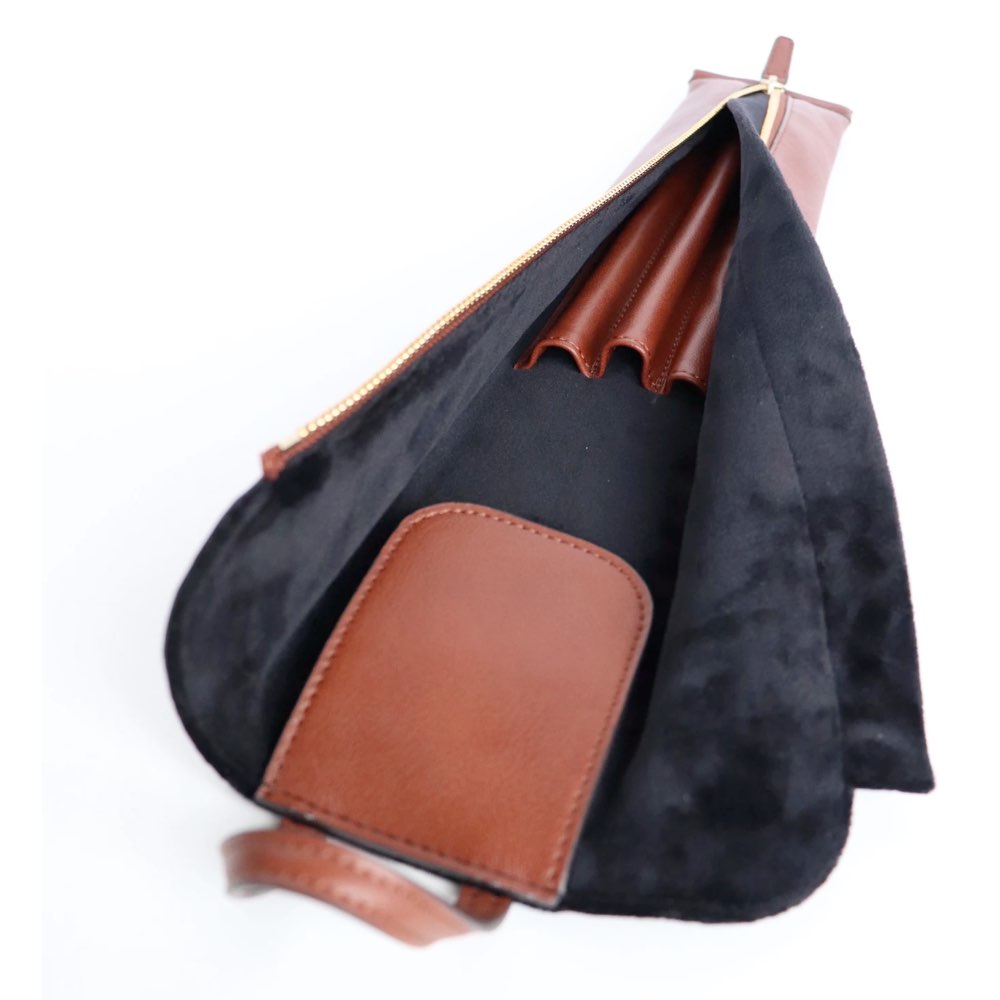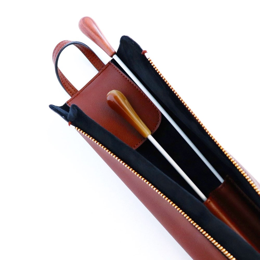 Denne taske kan indeholde 3 taktstokke, og den er produceret i flot og lækkert mahogni-farvet syntetisk læder. Tasken sikrer, at dine dirigentstokke ligger godt beskyttet.