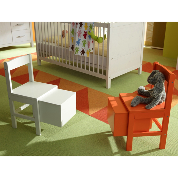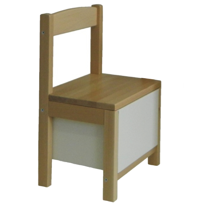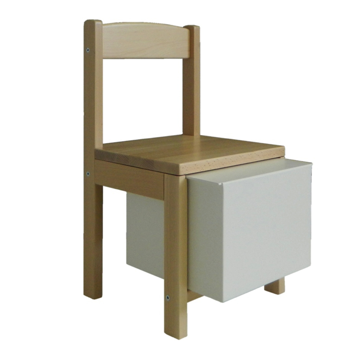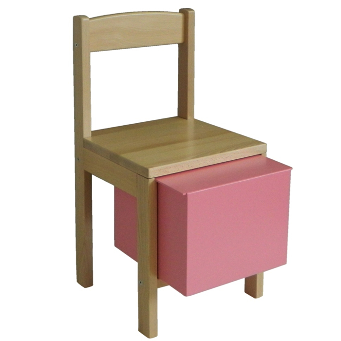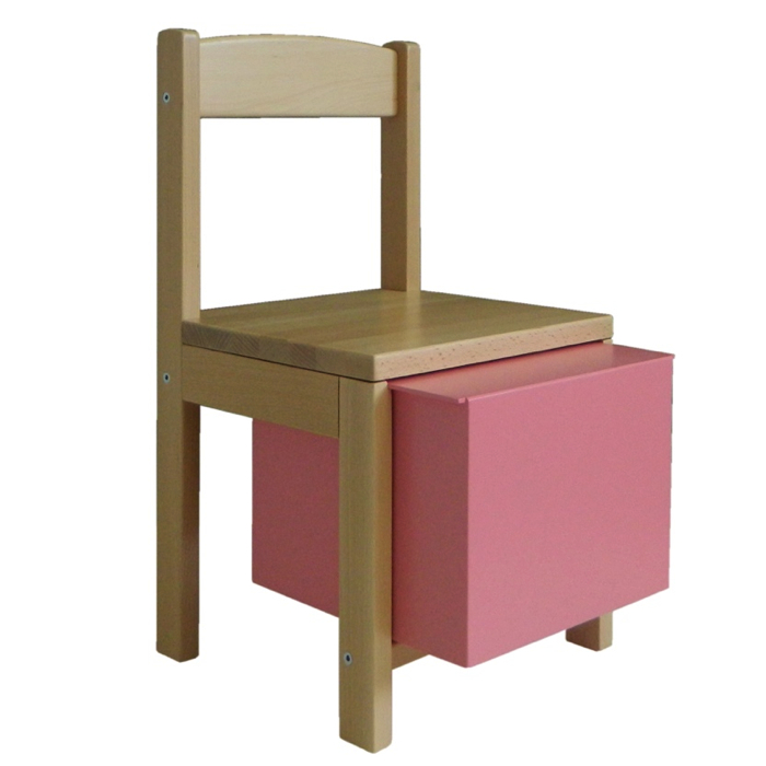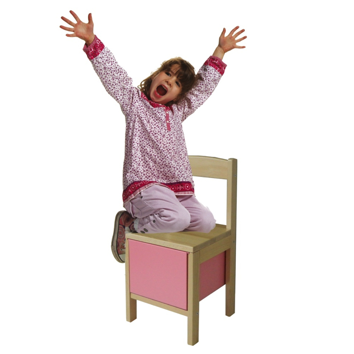 Børnestol med aftagelig cajon-tromme under sædet. Vælg mellem flere størrelser og farver.