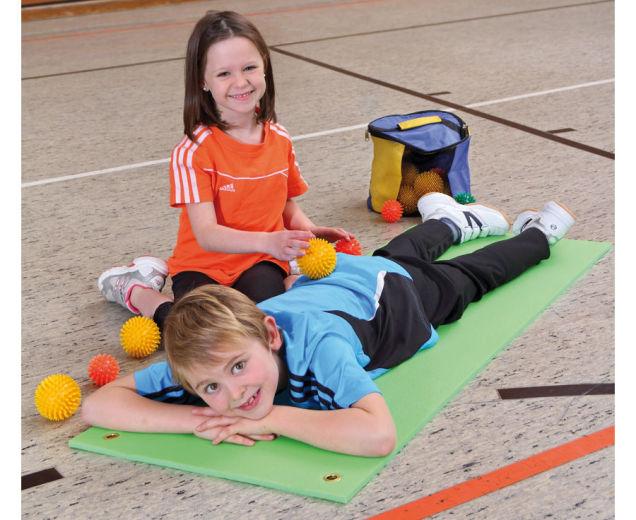 Måtte til gymnastik, yoga eller anden gulvaktivitet. Børnestørrelse med 140 cm længde. Kan opbevares sammenrullet eller hænges op.